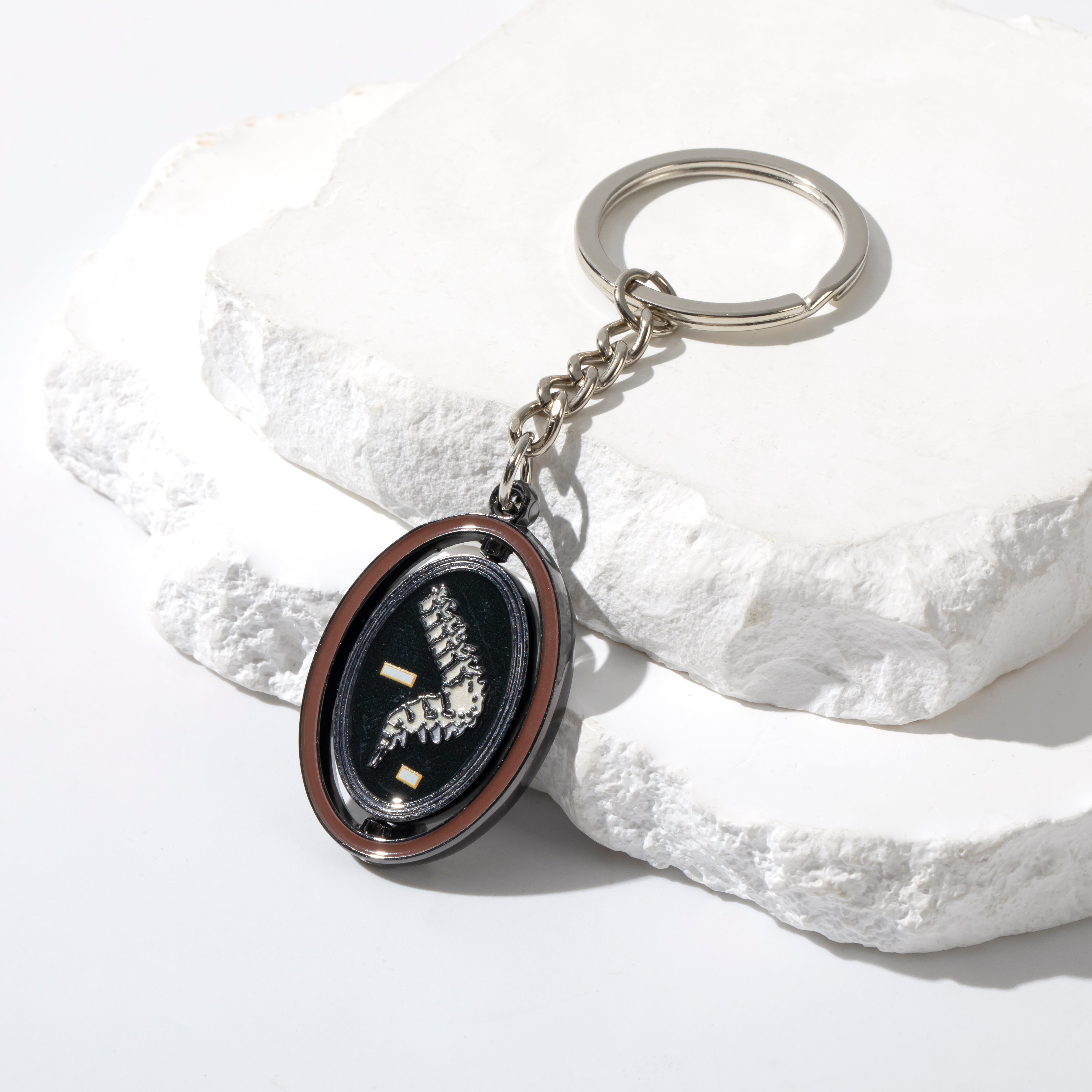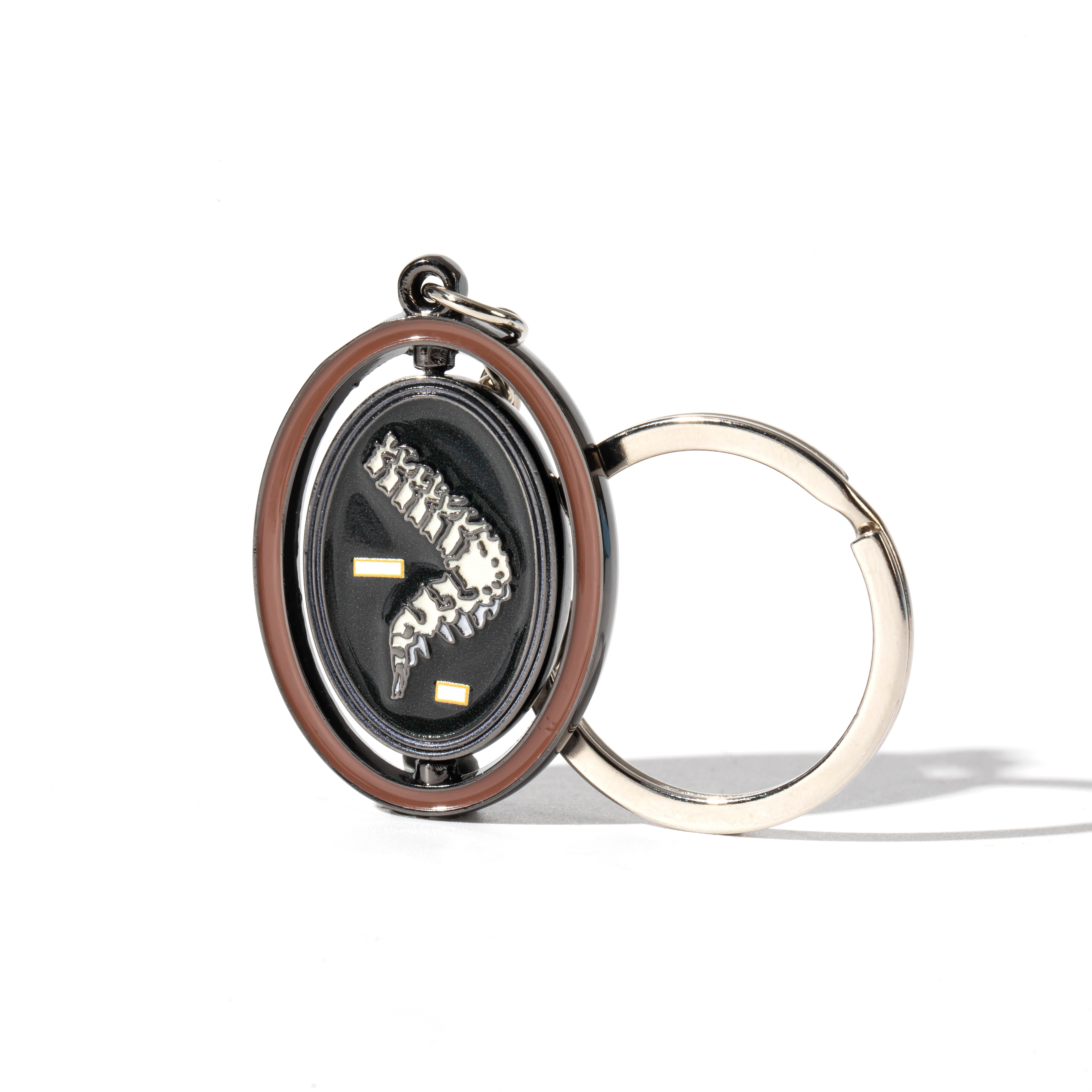 This enamel keychain features a curved spine with kyphosis, framed and ready to spin! A pocket-sized piece of pathology that’s educational, eye-catching, and oddly satisfying to fidget with.